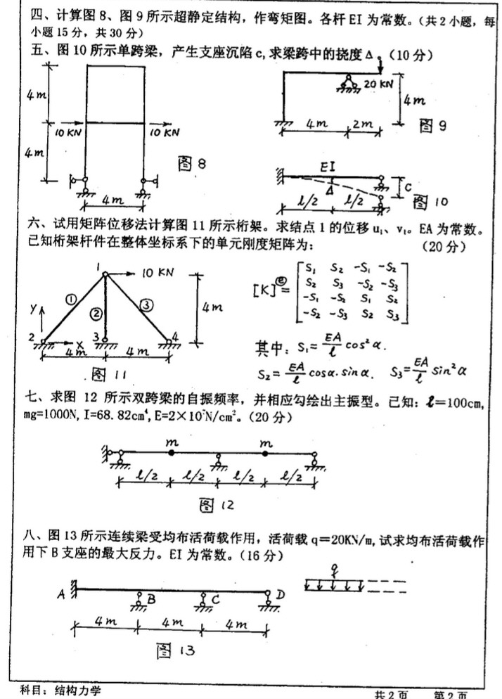 专业课考研资料 本站小编 免费考研网 2015-06-21西安建筑科技大学结构力学试卷(C)