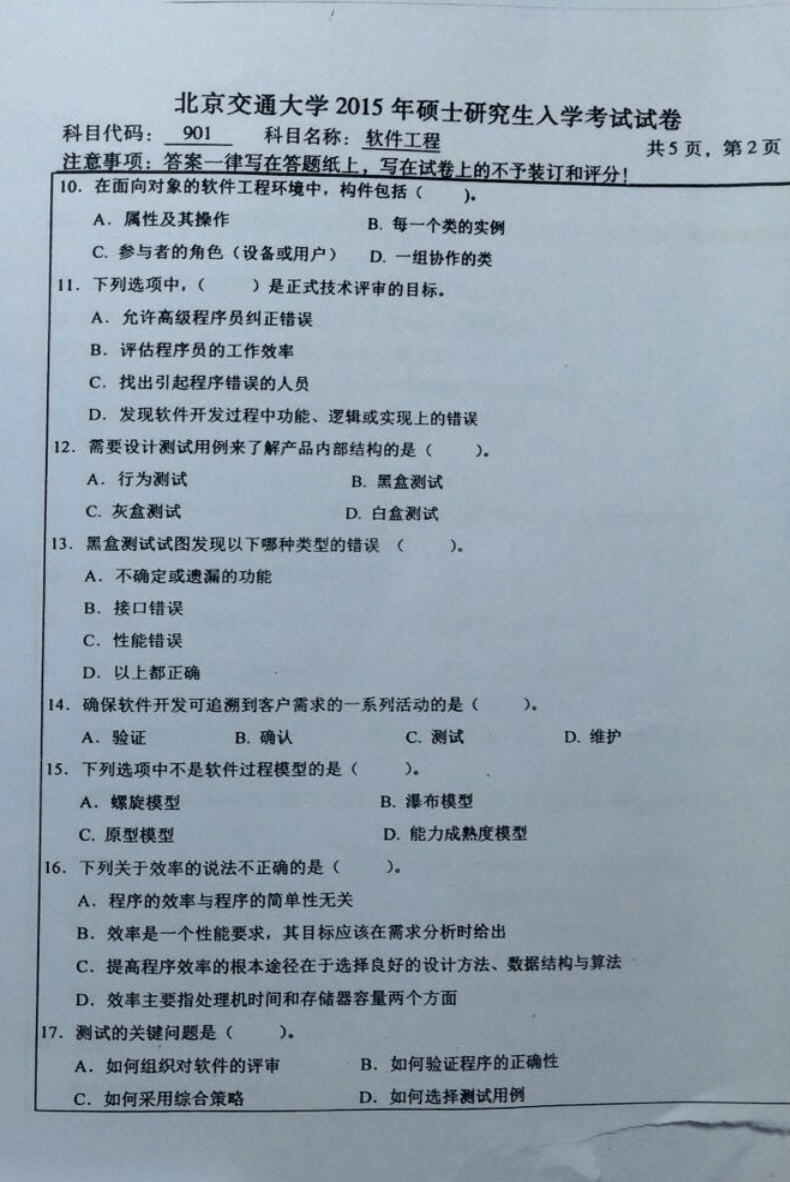 北京交通大学2015软件学院考研901软件工程考研真题(2)