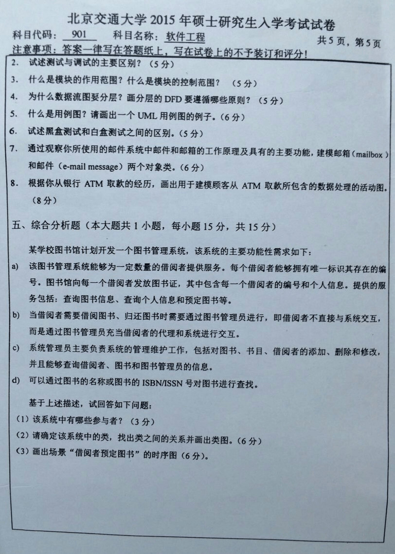 北京交通大学2015软件学院考研901软件工程考研真题(5)