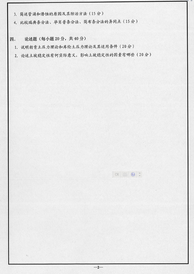 专业课考研资料 本站小编 免费考研网 2015-06-052012复试土力学 一、名词解释 1 前期固结应力 2 抗剪强度 3主动土压力 4强度破坏准则(好象是) 5基底附加应力。 二、简答题 1有效应力原理和用有效应力原理解释地面沉降。