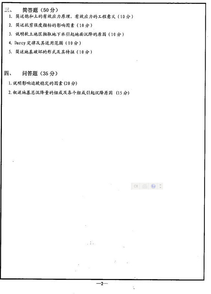 成都理工大学2008年土力学考研真题(2)