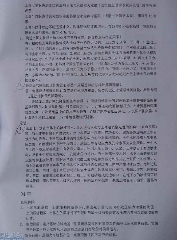 成都理工大学2010-2004年土力学考研真题答案解析(9)