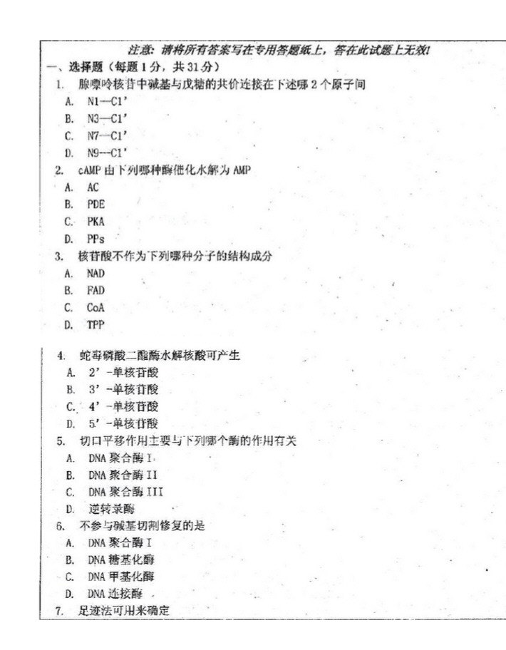 A.225 B.228 C.231 D.222 2.真核生物mRNA5ˊ-帽子鸟嘌呤甲基化得到供体是()