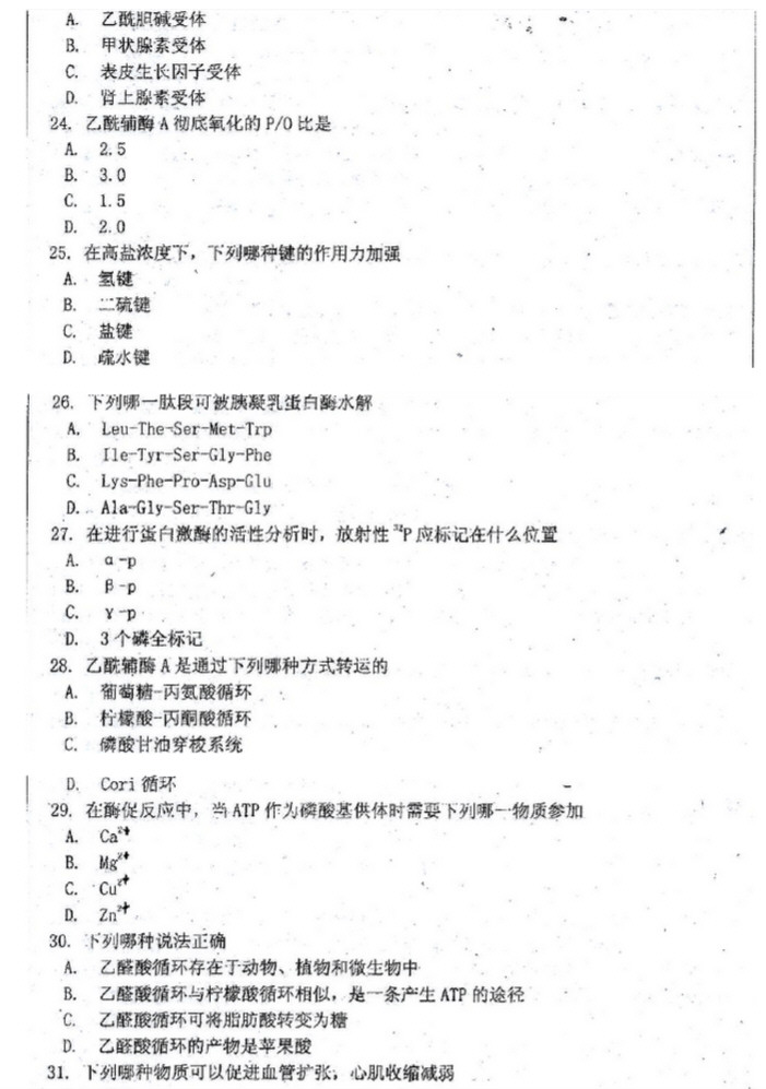 南开大学2013年硕士研究生入学考试试题 一、选择题(每题1分,共33分) 1、下列哪种氨基酸为非蛋白质氨基酸()A羟赖氨酸 B羟脯氨酸 C鸟氨酸 D精氨酸 2、下列哪种试剂不能用于蛋白质的N-末端分析()A2,4-二硝基氟苯 B二异丙基磷酰氟 C苯异硫氰酸酯 D丹黄酰氯 3、下列哪种酶只存在于乙醛酸循环 A柠檬酸合酶 B苹 ...