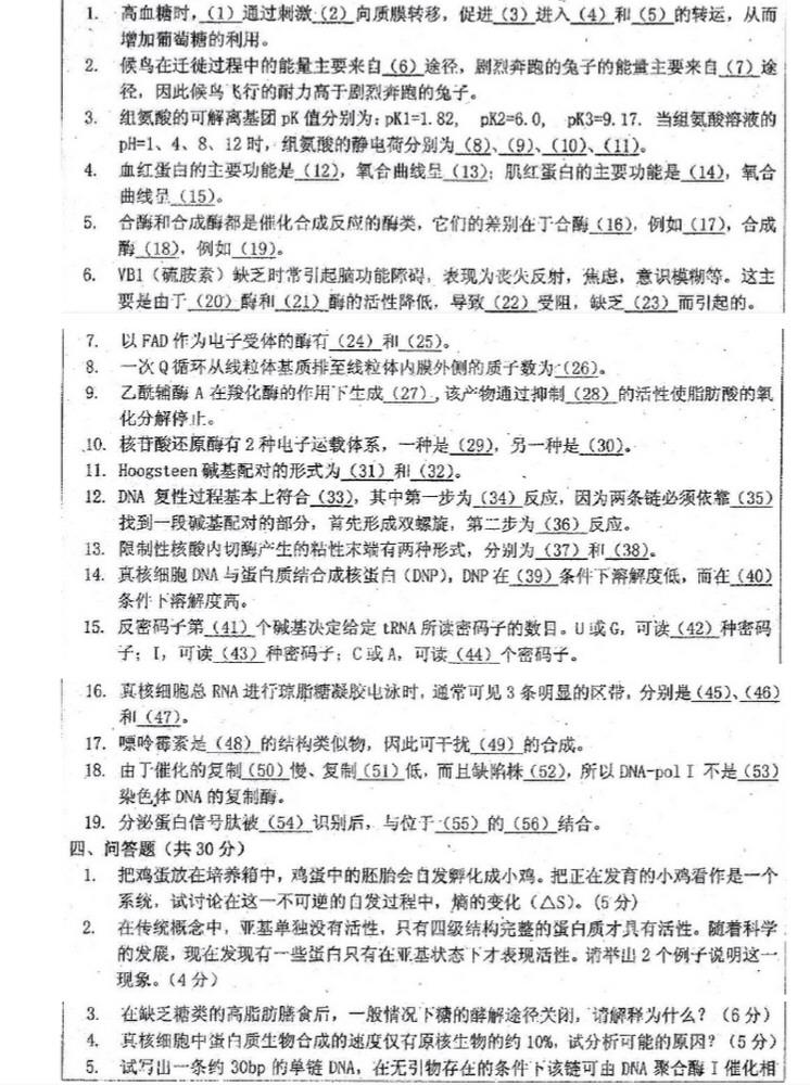 2015年苏州大学生物化学考研真题621 一、 名词解释4*5=20 1、 蛋白质的一级结构 2、 多酶复合物 3、 糖异生 4、 增色效应 5、 Wobble base pair 二、 问答(10*5 =50) 1、 简述DNA双螺旋结构的特点并试分析其对应的生物学意义。 2、 在糖代谢过程中生成的丙酮酸可进入哪些代谢途径 ...