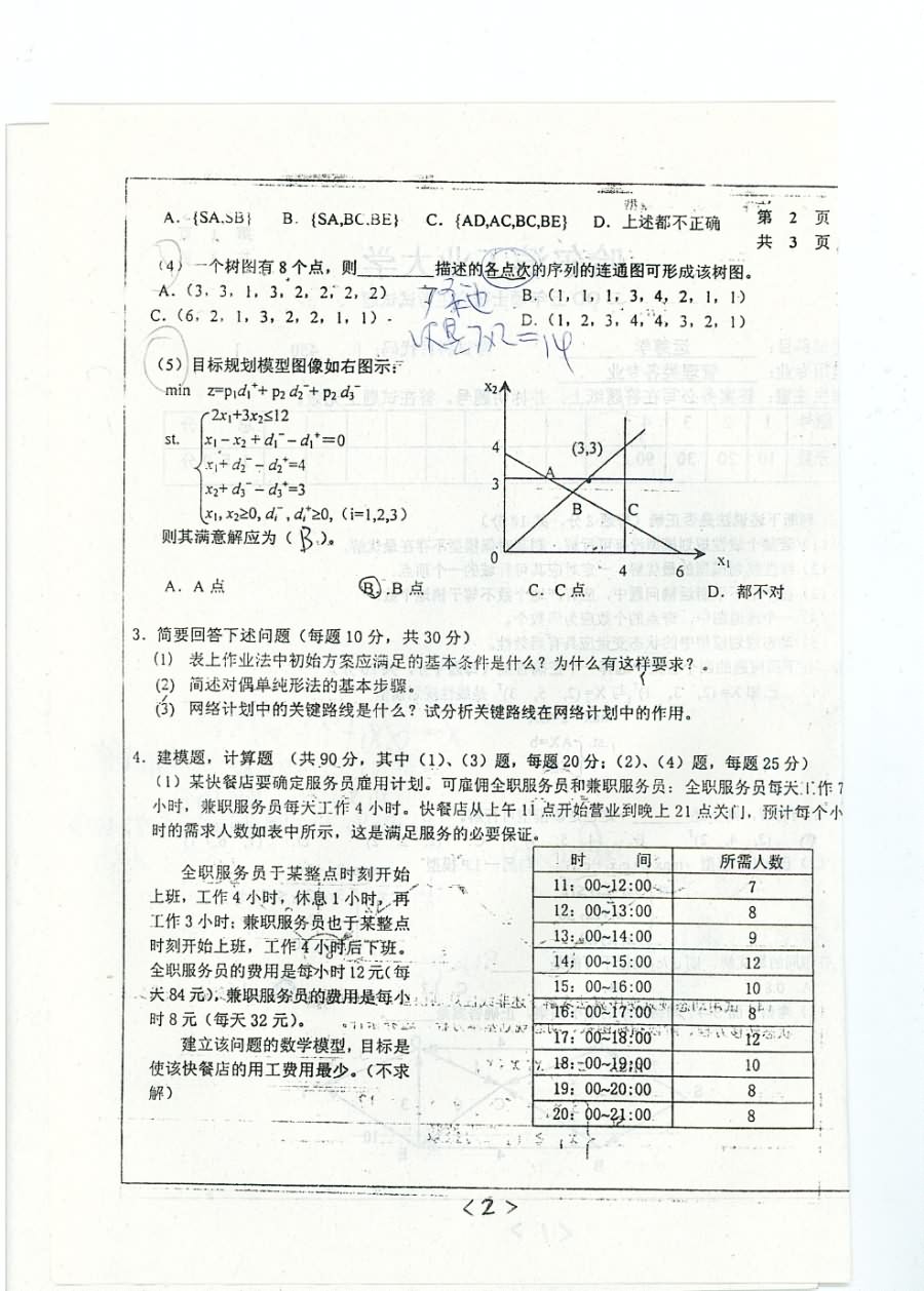 哈尔滨工业大学2005运筹学450考研真题(2)
