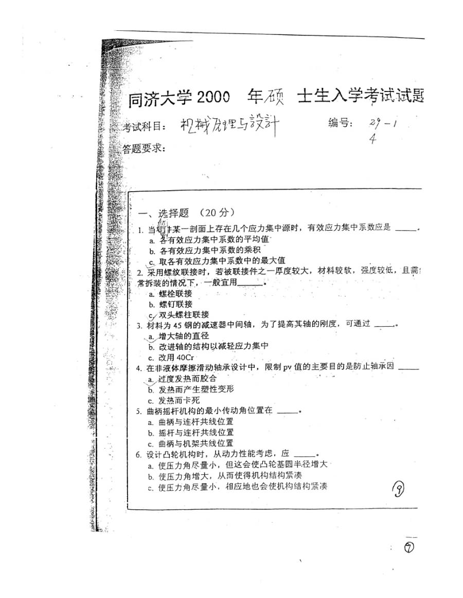 同济大学1998-2007年机械设计考研真题合集(7)