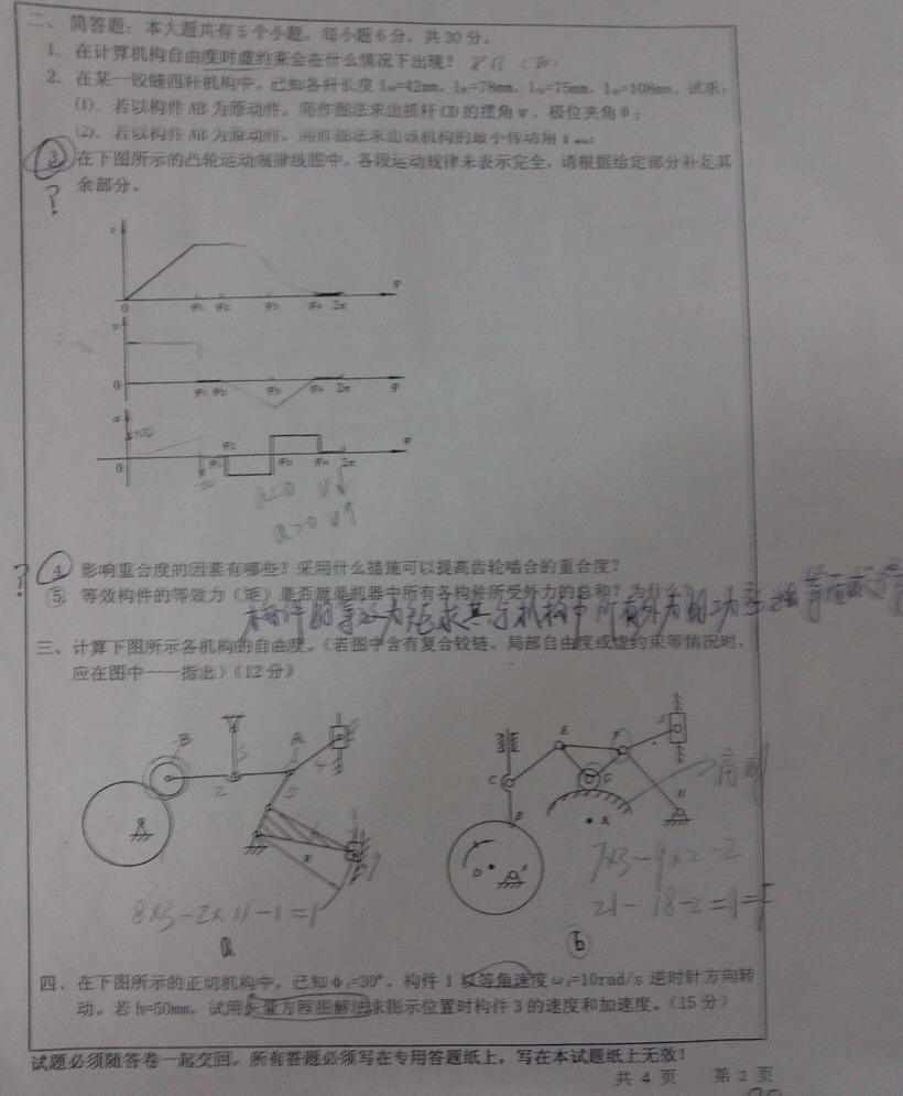 专业课考研资料 本站小编 免费考研网 2015-12-05东南大学机械原理2012考研真题回忆