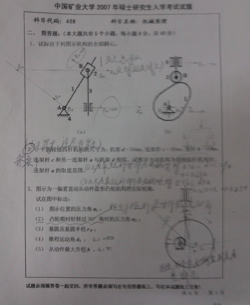 中国矿业大学2007年机械原理考研真题带答案(3)