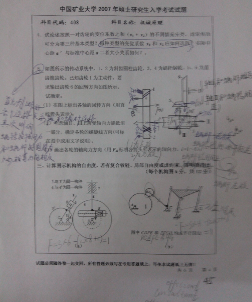 中国矿业大学2007年机械原理考研真题带答案(4)