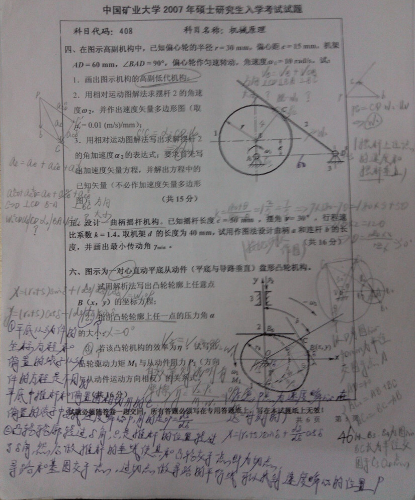 专业课考研资料 本站小编 免费考研网 2015-12-06中国矿业大学2009年机械原理考研真题带答案