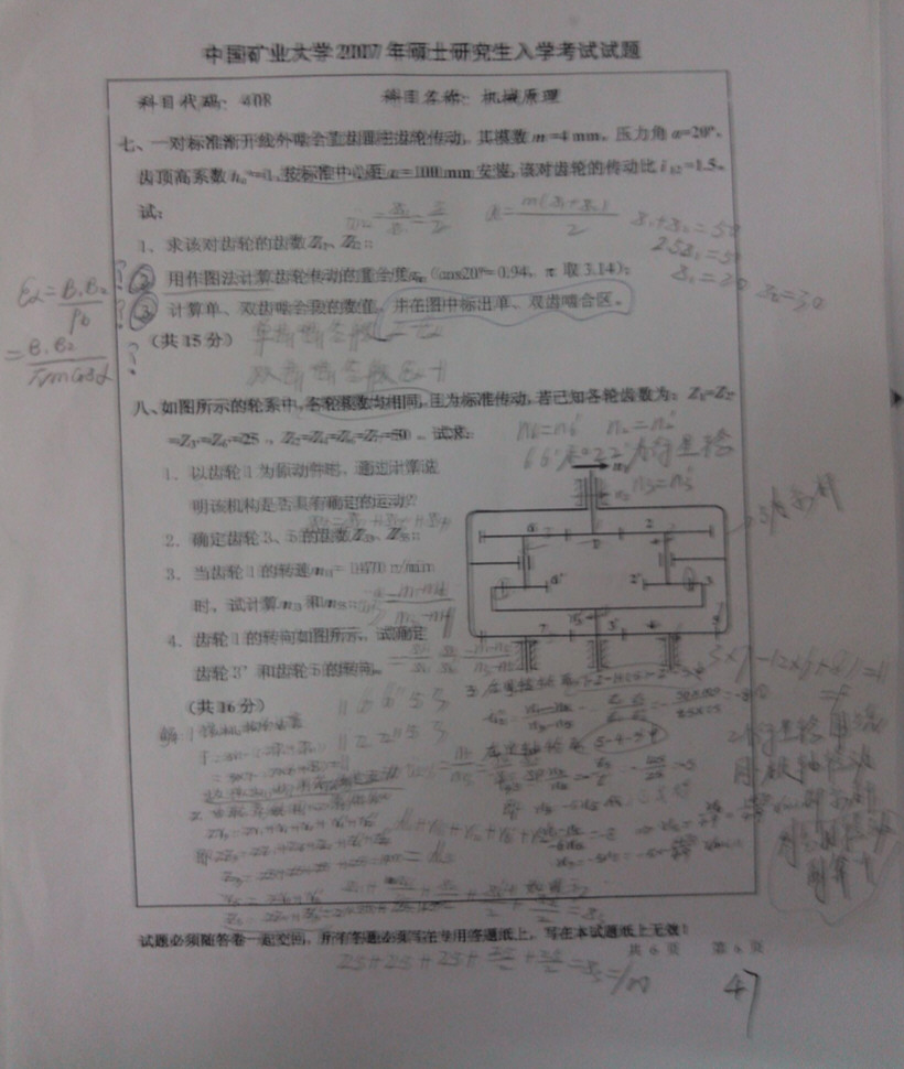 中国矿业大学2007年机械原理考研真题带答案(6)