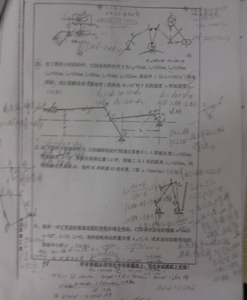 专业课考研资料 本站小编 免费考研网 2015-12-05东南大学机械原理2012考研真题回忆