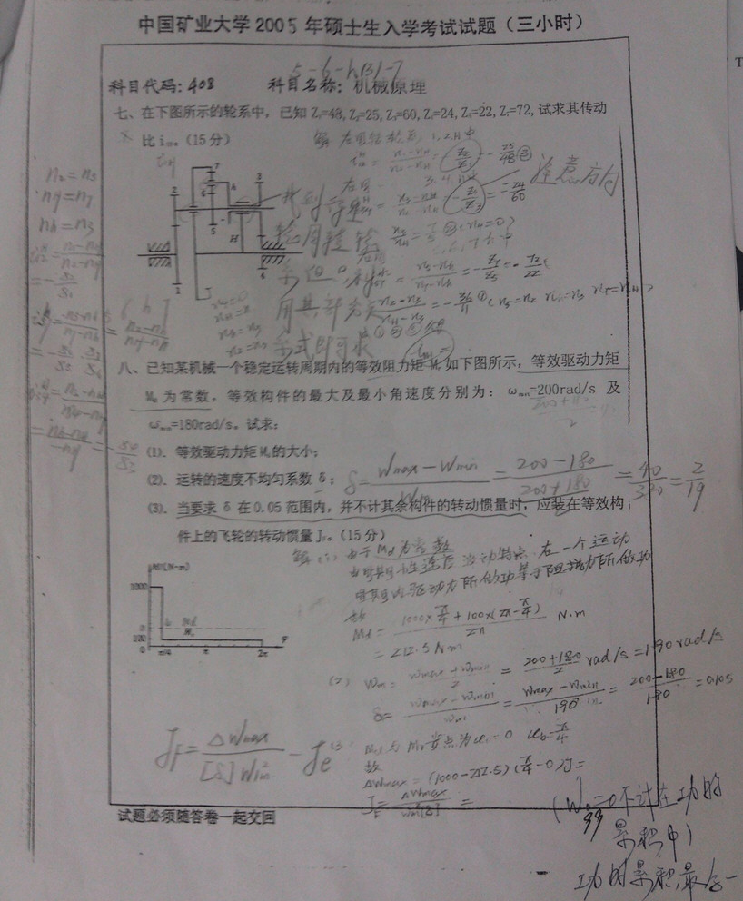 专业课考研资料 本站小编 免费考研网 2015-12-06中国矿业大学2008年机械原理考研真题带答案