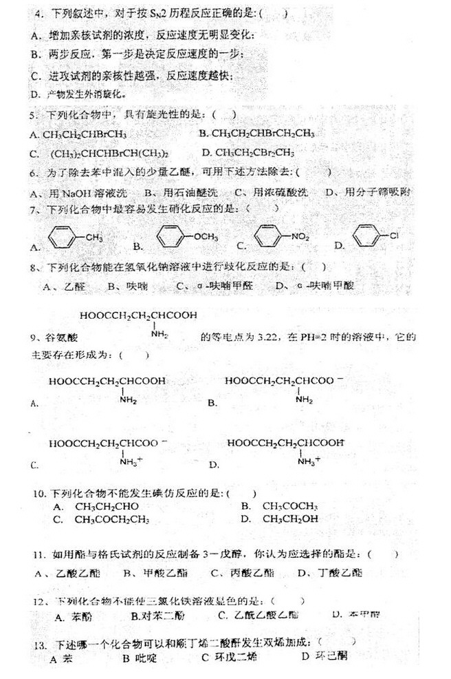 南京理工大学2011有机化学863考研模拟题三及答案(2)