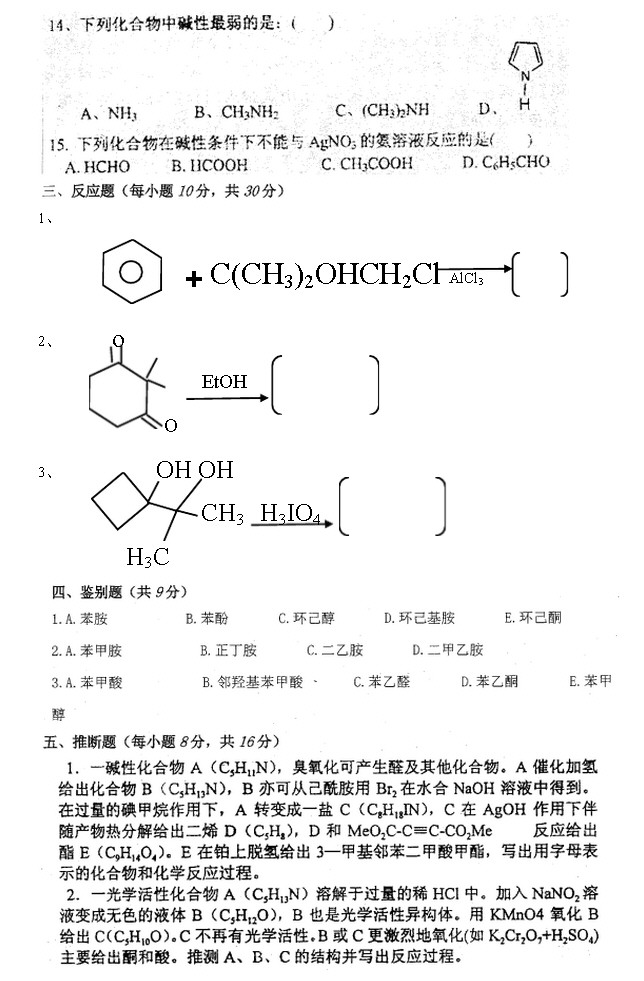 南京理工大学2011有机化学863考研模拟题三及答案(3)