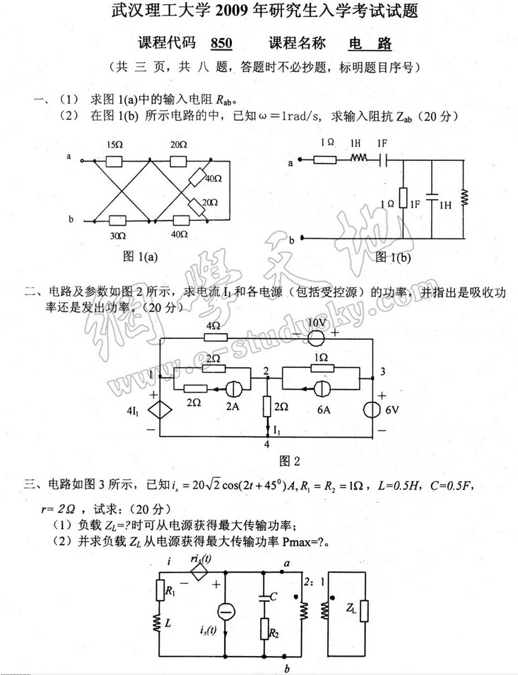 专业课考研资料 本站小编 免费考研网 2015-12-03东南大学2009年《电路分析基础》考研真题 答案