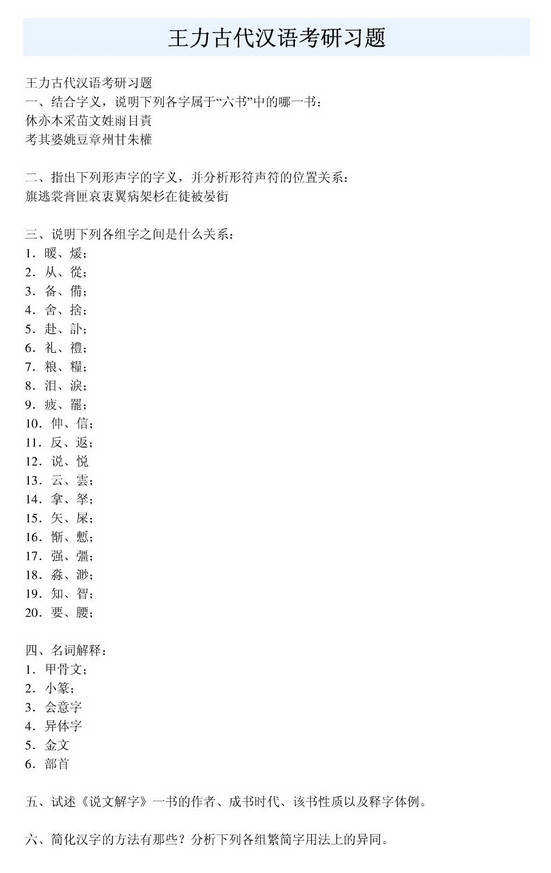 • 2013年南开文学院720古代汉语考研真题回忆版