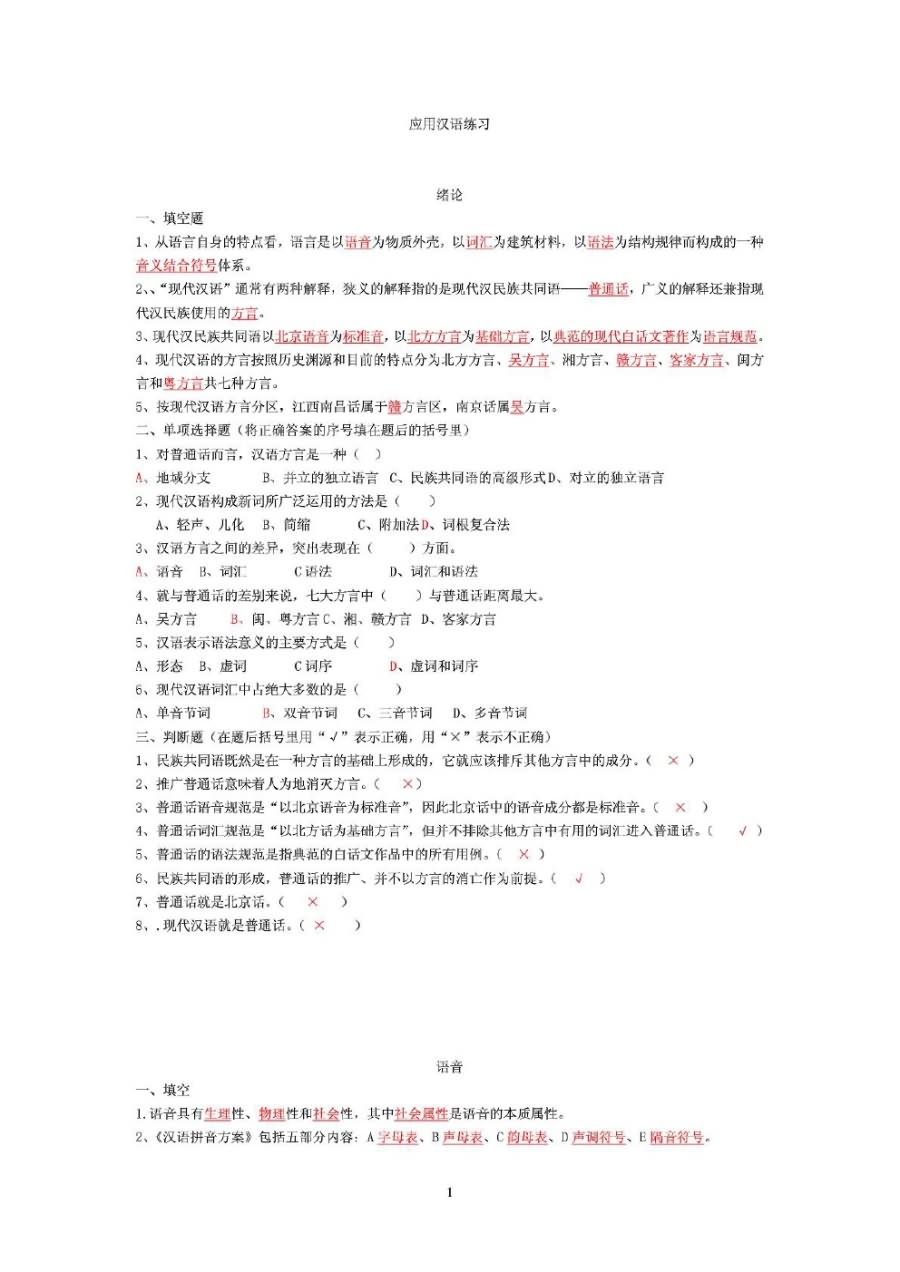 名词解释 聚合关系 变体(忘了条件还是自由了) 内部屈折 词汇意义 (啥) 语言 简答 结合符号与声音的关系谈一下语言与世界上的事物之间的间接关系(表述可能不那么准确) 社会对语言发展的影响 名词解释 互补 音位 人称代词 舌头音 简答 疑问代词的非疑问用法 马建忠(古汉也考了马氏文通) 甲骨文 判断 名词不能用作 ...