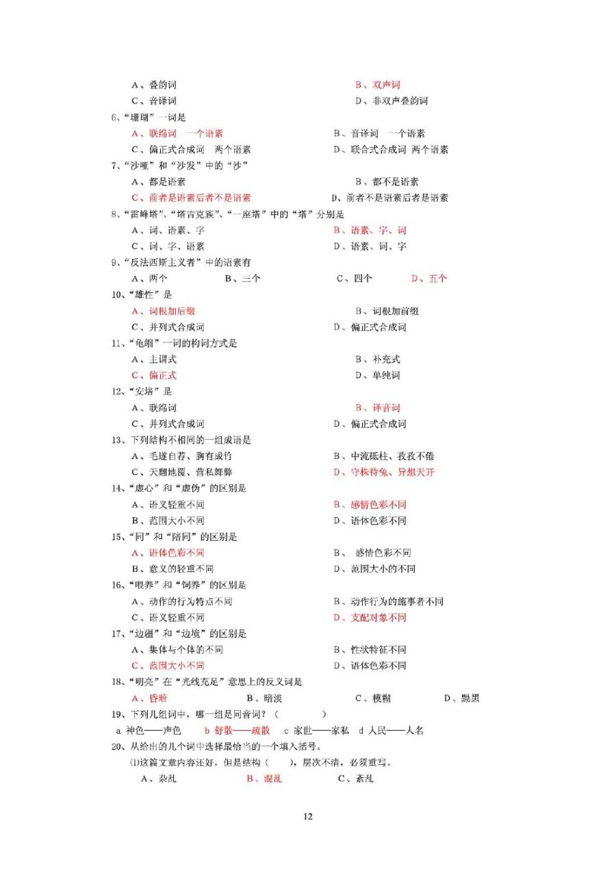 • 2012南京师范大学汉语言文字学考研真题现代汉语答案