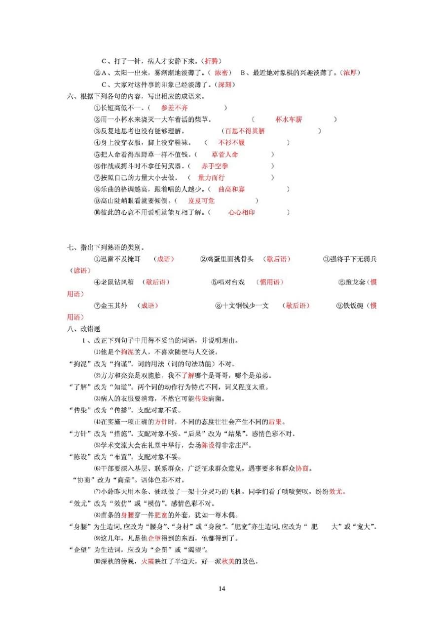 现代汉语考研试题库答案(14)