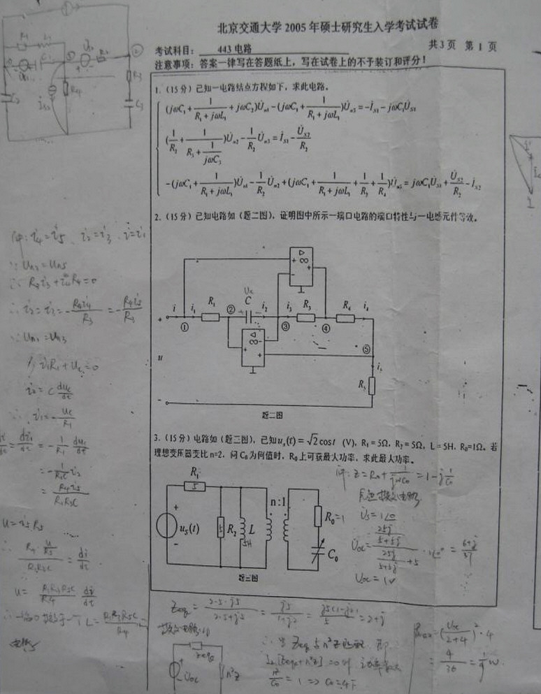 专业课考研资料 本站小编 免费考研网 2015-12-10西安电子科技大学电路期末试题(2005-2009年)