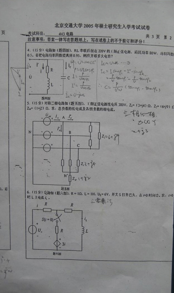 专业课考研资料 本站小编 免费考研网 2015-11-28上海理工大学2005电路考研真题