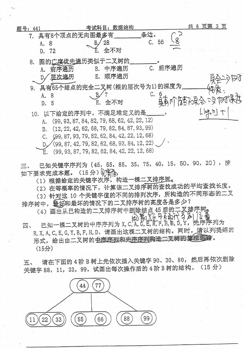 • 清华大学数据结构考研复习试题及答案