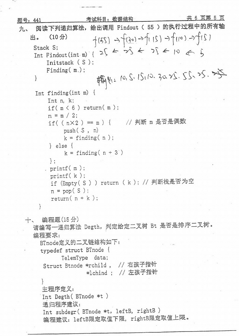 • 清华大学数据结构考研复习试题及答案