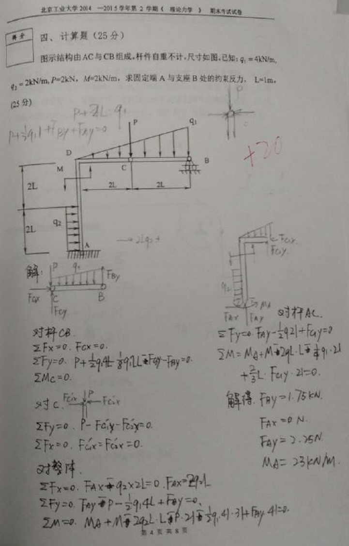 北京工业大学2014-2015第2学期理论力学期末考试试卷详细答案(4)