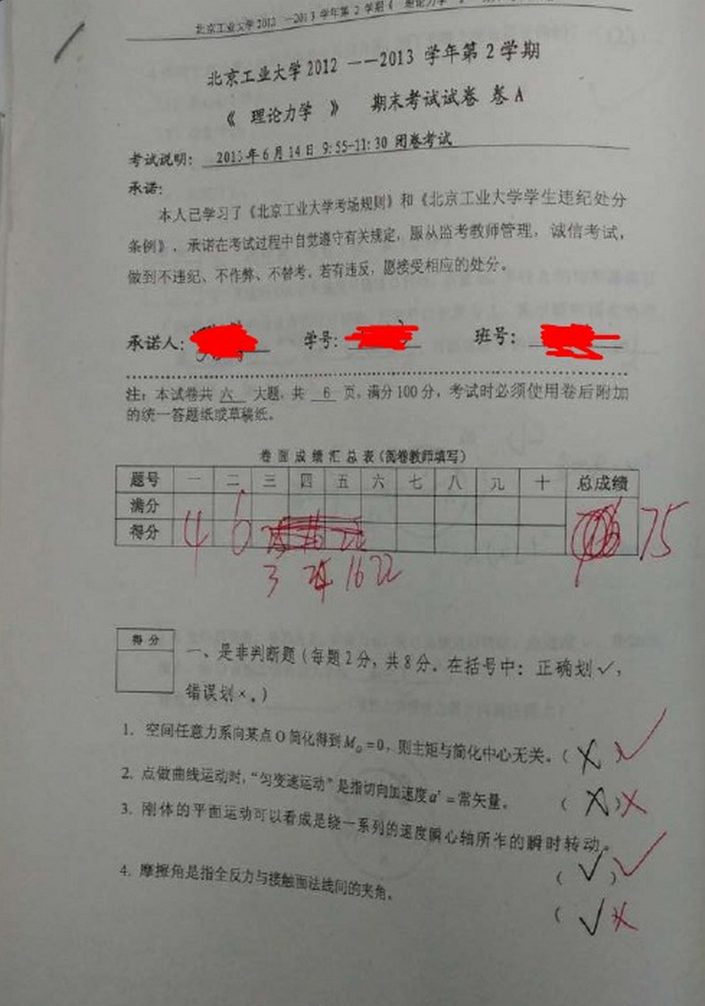 北京工业大学2012-2013第2学期理论力学期末考试试卷详细答案