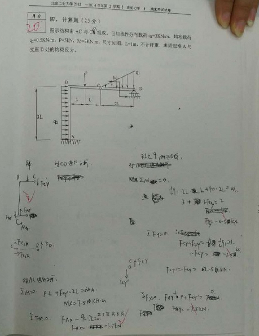 北京工业大学2013-2014第2学期理论力学期末考试试卷详细答案(4)