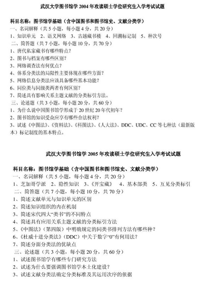 武汉大学图书馆学硕士入学考试历年真题(2)