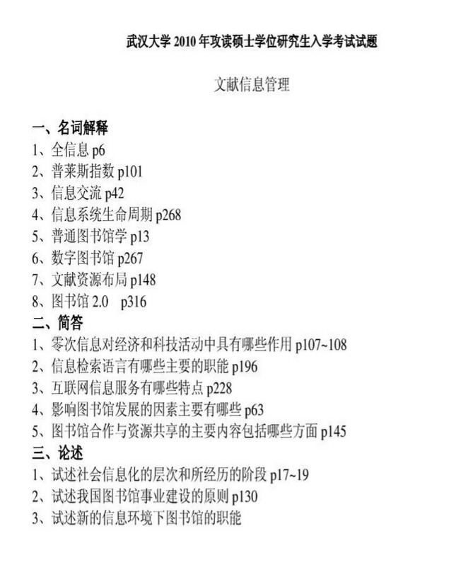 武汉大学图书馆学硕士入学考试历年真题(7)