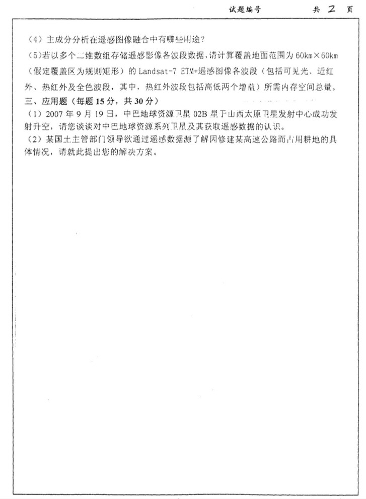 专业课考研资料 本站小编 免费考研网 2015-11-08一、名词解释(40分) 1.影像变形与几何纠正 2.中心投影与像点位移 3.反射波谱与发射波谱 4.轨道倾角与太阳同步 5.图像均值与方差 二、简答题(50分)