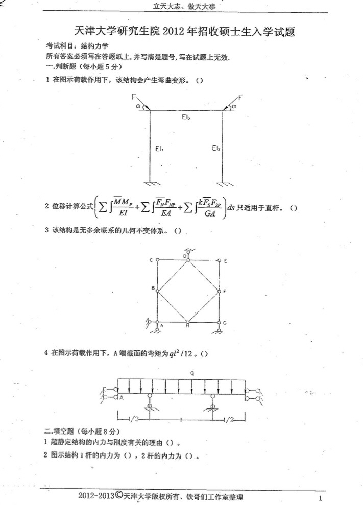 专业课考研资料 本站小编 青岛理工大学 2015-09-05安徽建筑大学2014结构力学考研试卷