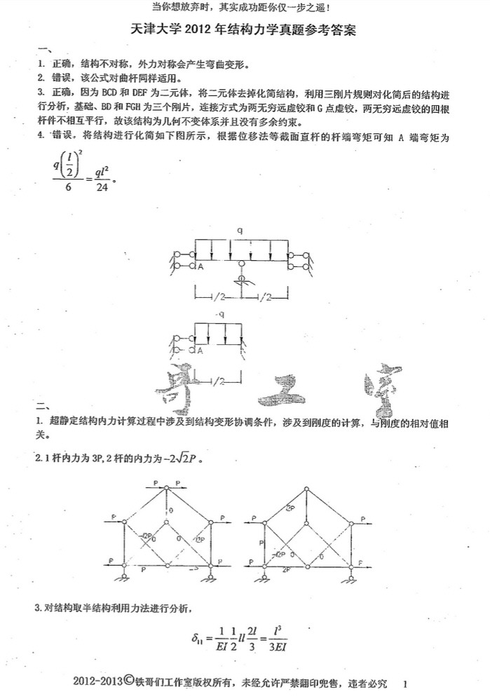 专业课考研资料 本站小编 网络资源 2015-09-211996-2013年青岛理工大学结构力学考研真题