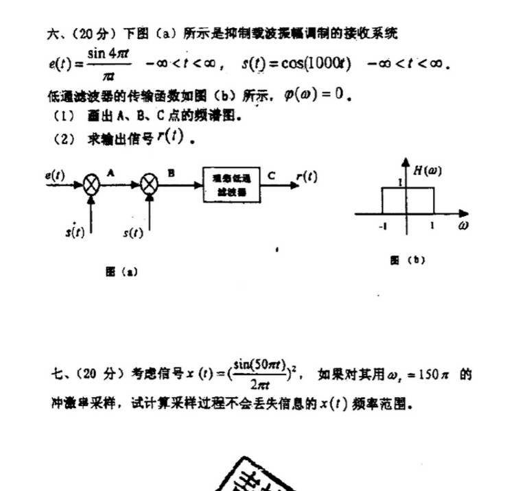 专业课考研资料 本站小编 网络资源 2015-07-14西北工业大学2004信号与系统研究生入学考试笔试题