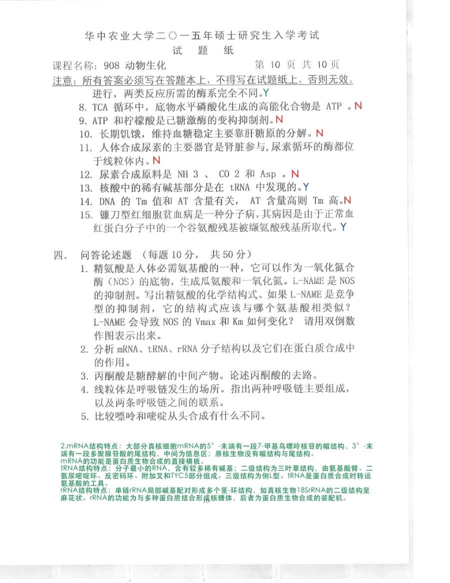 2015华中农业大学908-动物生化考研真题含答案(10)