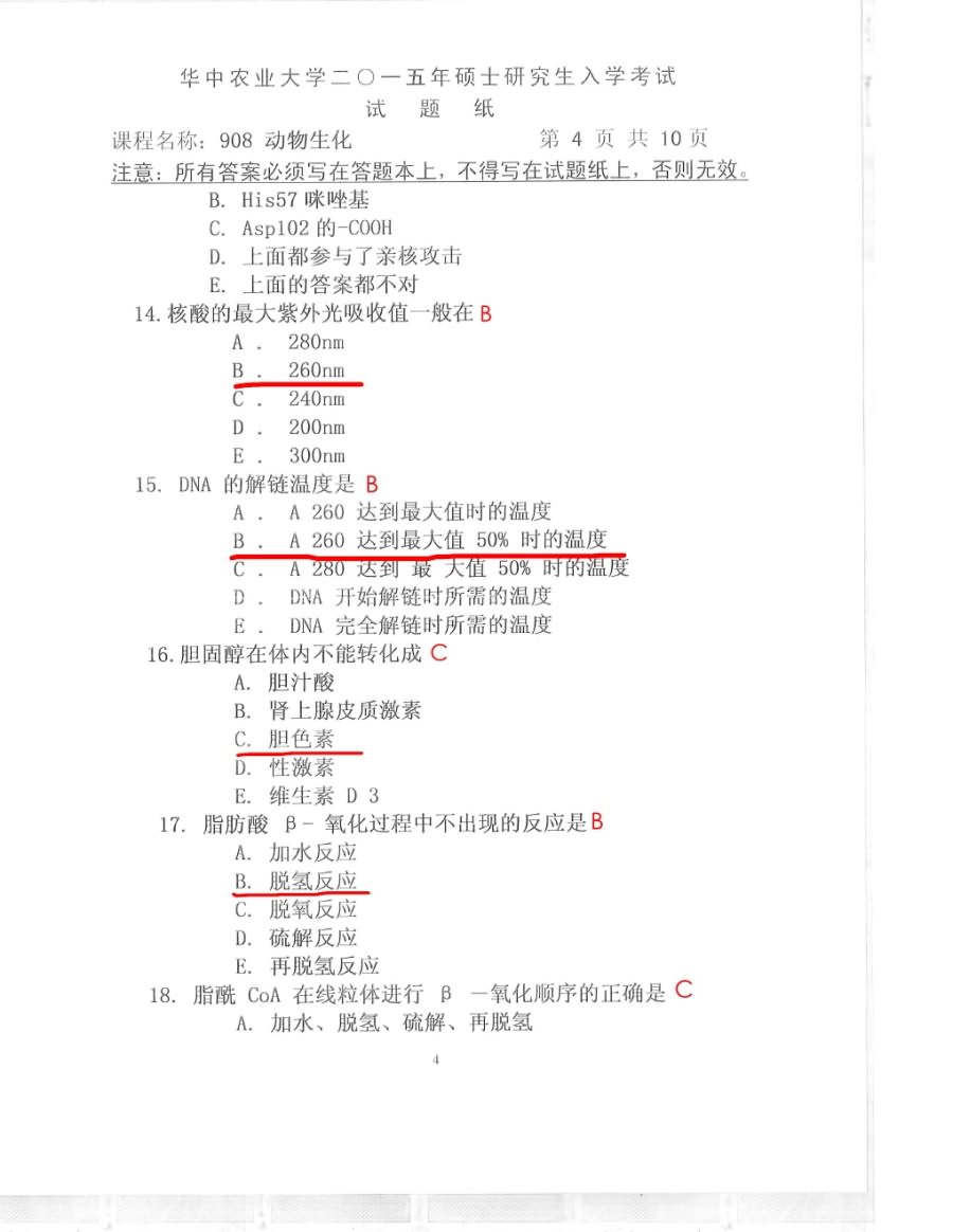 2015华中农业大学908-动物生化考研真题含答案(4)