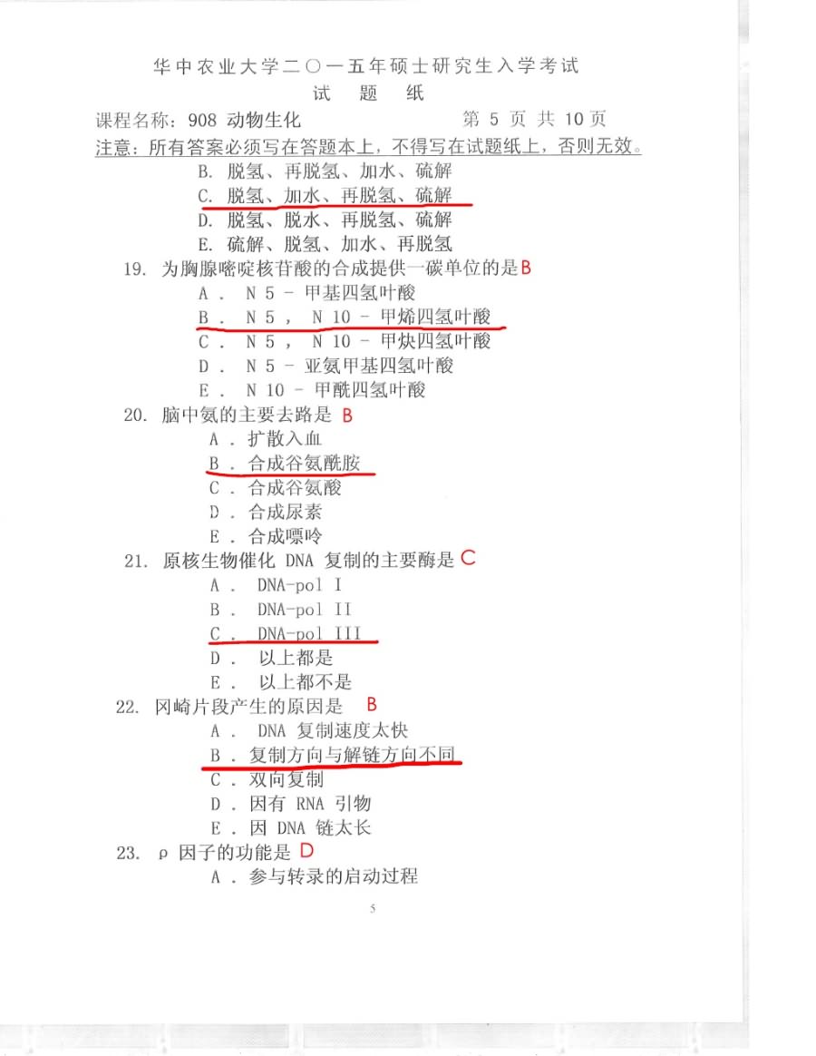 2015华中农业大学908-动物生化考研真题含答案(5)
