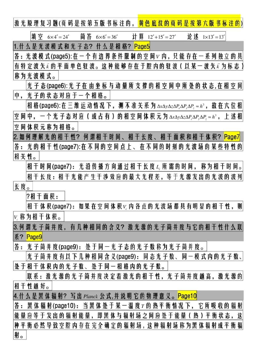 2015华中科技大学光学工程激光原理900真题回忆 一、简答题 1、△n 大于0,激光器是否能够产生自激振荡? 2、光学谐振腔的结构和作用 3、共焦腔与一般腔的等价性 4、均匀加宽与非均匀加宽的特点 5、连续激光器从开始振荡到产生稳定输出增益系数的变化情况 6、光学模式以及横模和纵模 二、三能级四能级的本质区别,以及 ...专业课考研资料 本站小编 免费考研网 2015-12-17内蒙古大学激光原理与技术课后题