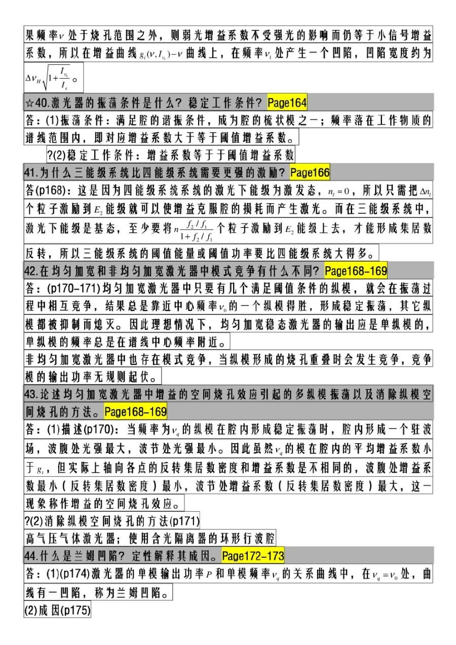 2015华中科技大学光学工程激光原理900真题回忆 一、简答题 1、△n 大于0,激光器是否能够产生自激振荡? 2、光学谐振腔的结构和作用 3、共焦腔与一般腔的等价性 4、均匀加宽与非均匀加宽的特点 5、连续激光器从开始振荡到产生稳定输出增益系数的变化情况 6、光学模式以及横模和纵模 二、三能级四能级的本质区别,以及 ...专业课考研资料 本站小编 免费考研网 2015-12-17内蒙古大学激光原理与技术课后题