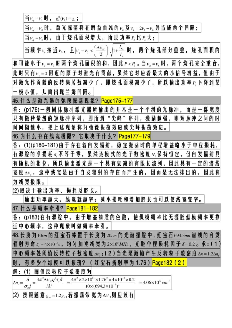 专业课考研资料 本站小编 免费考研网 2015-12-20华中科技大学《激光原理》重点习题解析