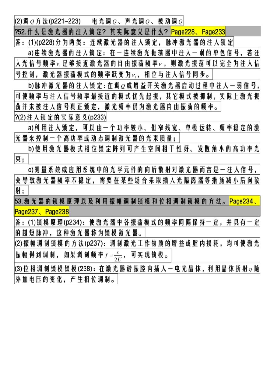 2015华中科技大学光学工程激光原理900真题回忆 一、简答题 1、△n 大于0,激光器是否能够产生自激振荡? 2、光学谐振腔的结构和作用 3、共焦腔与一般腔的等价性 4、均匀加宽与非均匀加宽的特点 5、连续激光器从开始振荡到产生稳定输出增益系数的变化情况 6、光学模式以及横模和纵模 二、三能级四能级的本质区别,以及 ...专业课考研资料 本站小编 免费考研网 2015-12-17内蒙古大学激光原理与技术课后题