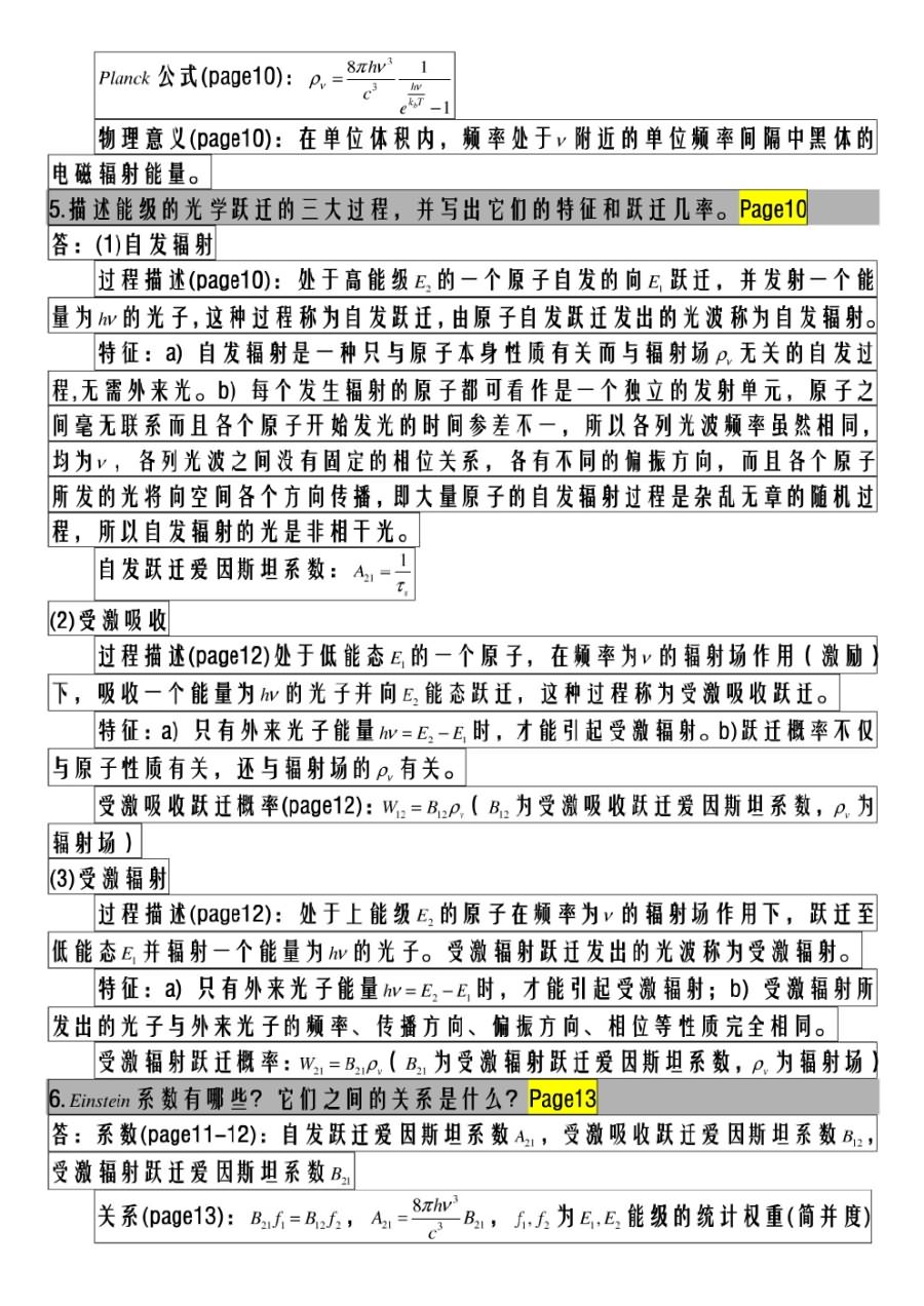2015华中科技大学光学工程激光原理900真题回忆 一、简答题 1、△n 大于0,激光器是否能够产生自激振荡? 2、光学谐振腔的结构和作用 3、共焦腔与一般腔的等价性 4、均匀加宽与非均匀加宽的特点 5、连续激光器从开始振荡到产生稳定输出增益系数的变化情况 6、光学模式以及横模和纵模 二、三能级四能级的本质区别,以及 ...专业课考研资料 本站小编 免费考研网 2015-12-17内蒙古大学激光原理与技术课后题
