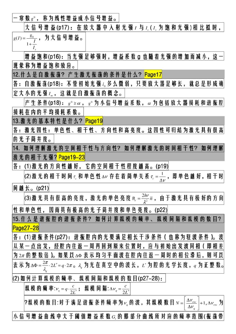 2015华中科技大学光学工程激光原理900真题回忆 一、简答题 1、△n 大于0,激光器是否能够产生自激振荡? 2、光学谐振腔的结构和作用 3、共焦腔与一般腔的等价性 4、均匀加宽与非均匀加宽的特点 5、连续激光器从开始振荡到产生稳定输出增益系数的变化情况 6、光学模式以及横模和纵模 二、三能级四能级的本质区别,以及 ...专业课考研资料 本站小编 免费考研网 2015-12-17内蒙古大学激光原理与技术课后题