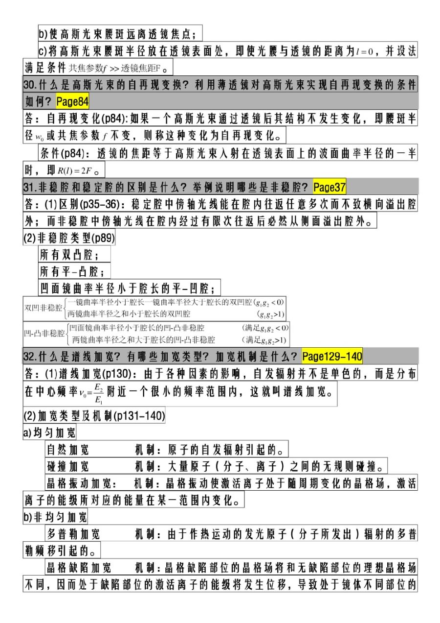 2015华中科技大学光学工程激光原理900真题回忆 一、简答题 1、△n 大于0,激光器是否能够产生自激振荡? 2、光学谐振腔的结构和作用 3、共焦腔与一般腔的等价性 4、均匀加宽与非均匀加宽的特点 5、连续激光器从开始振荡到产生稳定输出增益系数的变化情况 6、光学模式以及横模和纵模 二、三能级四能级的本质区别,以及 ...专业课考研资料 本站小编 免费考研网 2015-12-17内蒙古大学激光原理与技术课后题