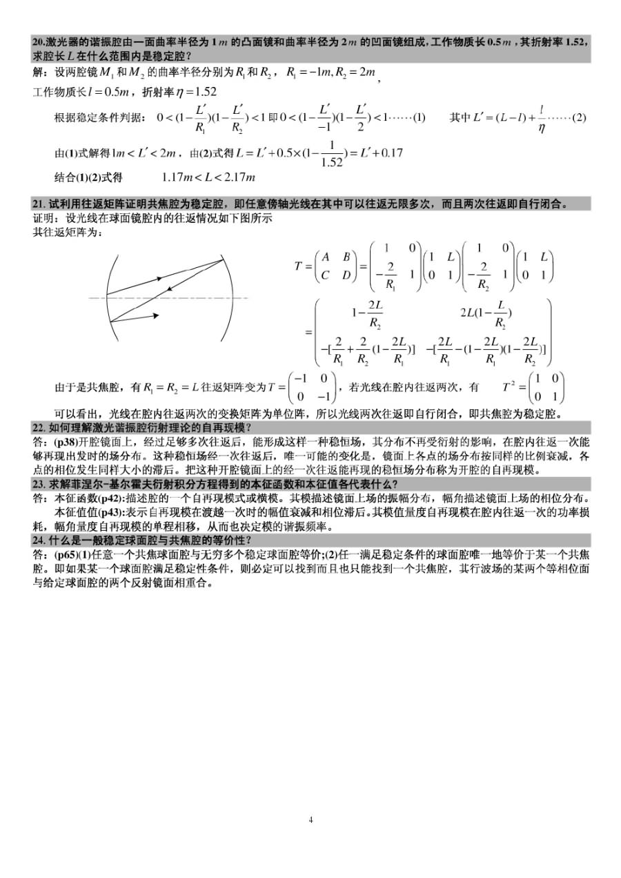 专业课考研资料 本站小编 免费考研网 2015-12-20华中科技大学《激光原理》重点习题解析