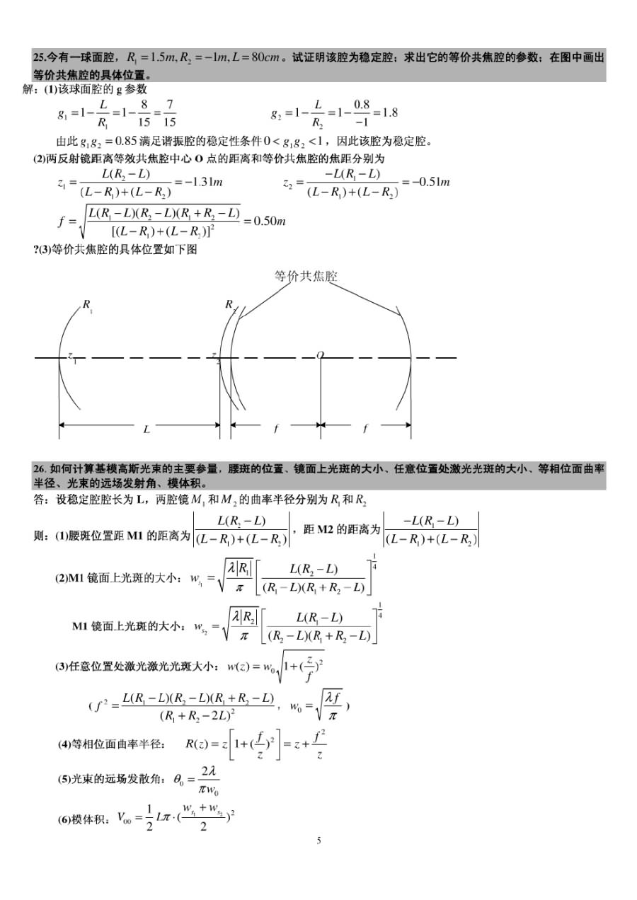 华中科技大学《激光原理》考前必看的经典例题
